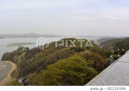 韓国北西部の烏頭山統一展望台から臨津江を隔てて見える北朝鮮