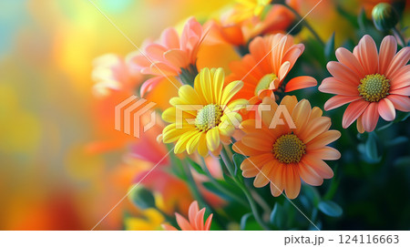 オレンジ色と緑色系が混ざり合った抽象的背景