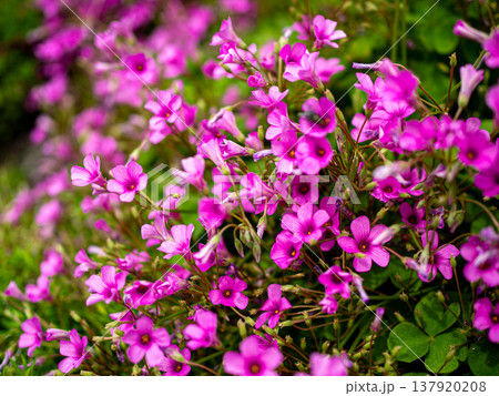 鮮やかなピンク色のオキザリスの群生