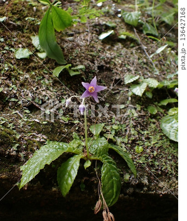 山地の岩場に咲く赤紫色の山野草イワタバコ