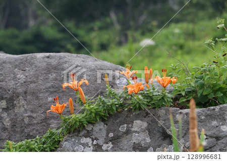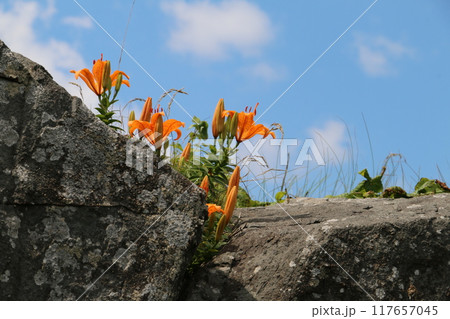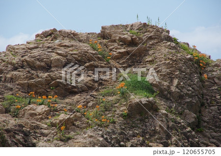 夏場の種差海岸の渚を彩るスカシユリ