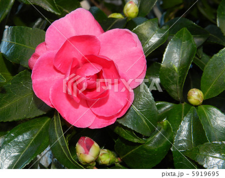 寒い冬咲き誇る濃いピンク色のサザンカの花