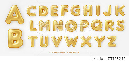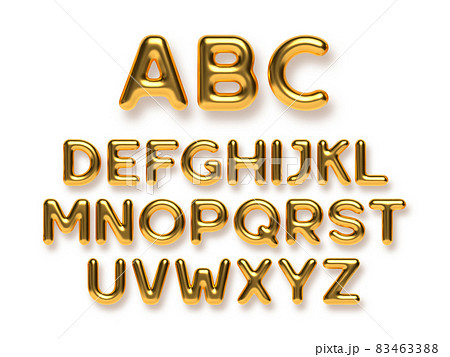Alphabet balloons font made of golden inflatable balloons isolated on white background