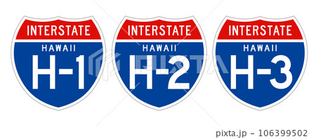 ハワイの高速道路の標識 ハワイ1号線 2号線 3号線 HAWAII H-1 H-2 H-3