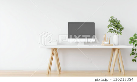 モニターが置かれたモダンなオフィスの明るいデスク風景