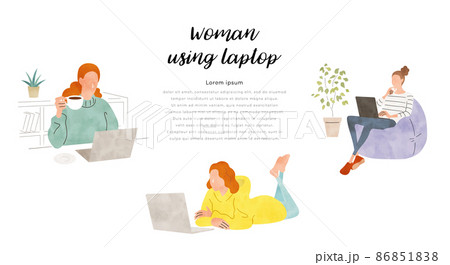 ベクターイラスト素材:ノートパソコンを使う女性たち
