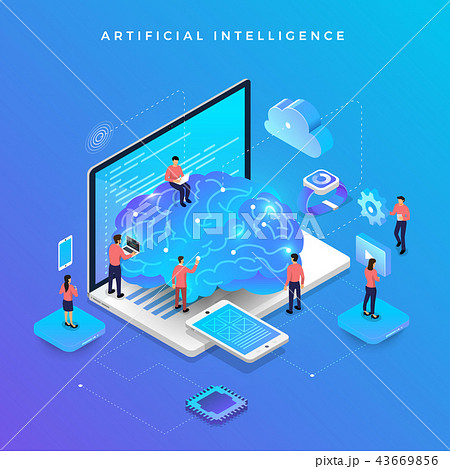 3d isometric Artificial Intelligence(AI) concept with digital circuit and programmer, Machine learning, digital Brain future technology. Vector Illustration eps10