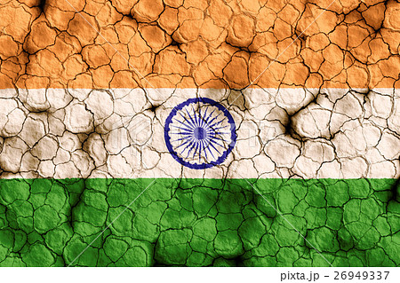 乾裂土壤上的印度國旗特寫紋理背景(高分辨率 3D CG 渲染∕著色插圖)飢荒乾旱自然災害