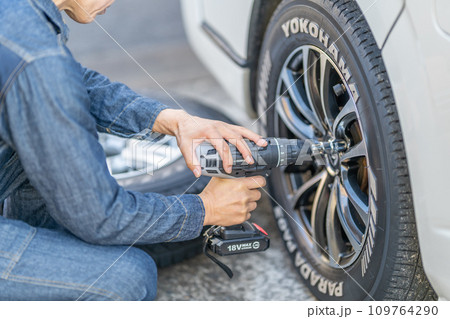 タイヤ交換 スタッドレスタイヤ インパクトドライバ メカニック 素手