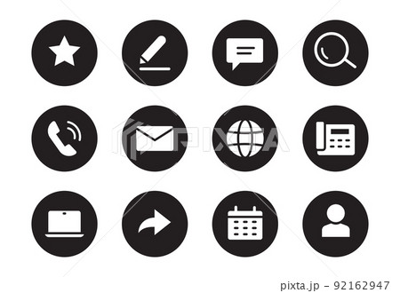Phone, email contact icon. Mail, telephone adress, message symbol for website button. Black solid pictogram design style icon set