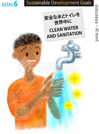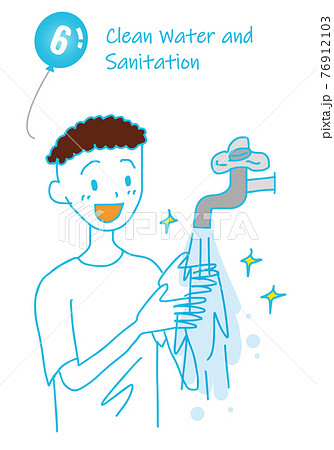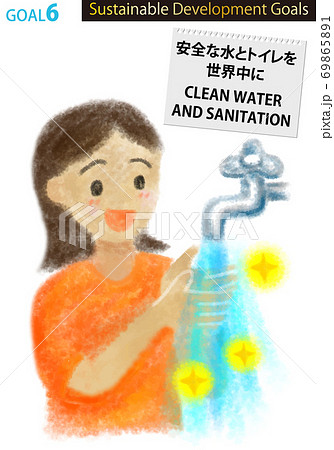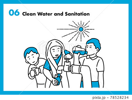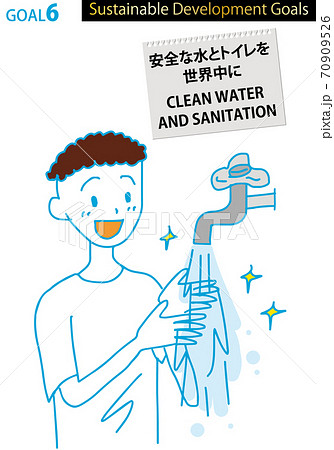 SDGs目標6イメージのメッセージとシンプル線画イラスト
