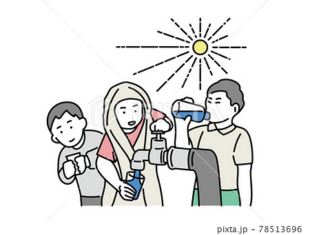 安全な水とトイレを世界中に 水を飲む子どもたちのイラスト
