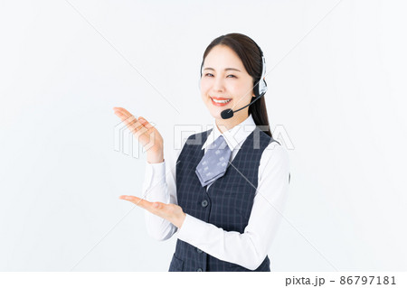 白バックのオペレーターの若い女性