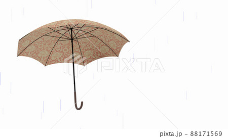 雨とウィリアムモリス柄のピンクの傘【白背景】
