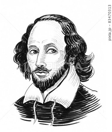 William Shakespeaer. Ink black and white drawing