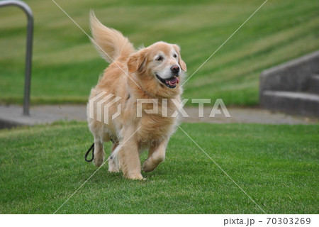 ボール遊びの嬉しい顔のゴールデンレトリーバー