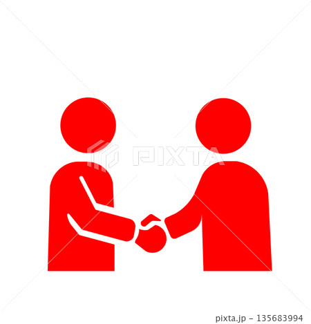 契約成立や協力関係を象徴する人物イラスト(赤)