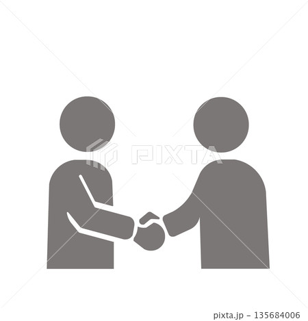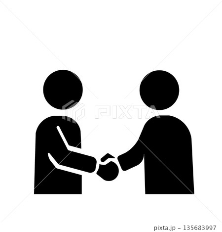 契約成立や協力関係を象徴する人物イラスト(黒)
