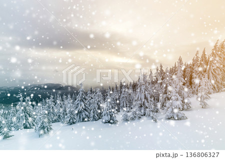 Fantastic winter landscape. On the eve of the holiday. The dramatic scene. Carpathian, Ukraine, Europe. Happy New Year
