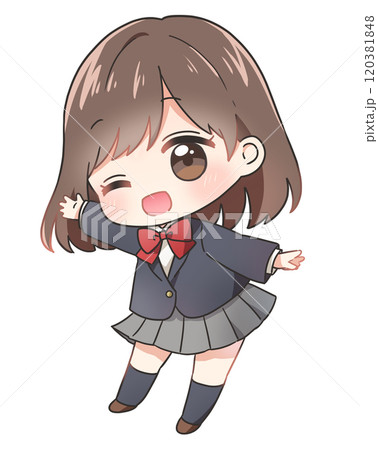 キュンですポーズをするかわいいコギャル女子高校生の全身イラスト