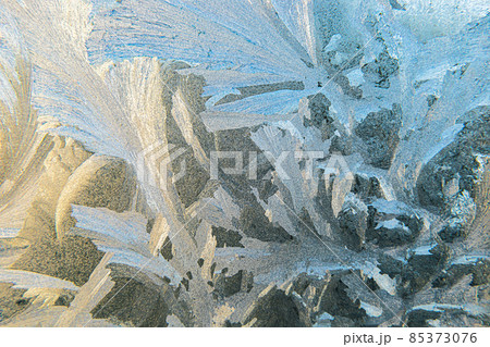 Frozen winter window with shiny ice frost pattern texture. Christmas wonder symbol, abstract background. Extreme north low temperature, natural Ice snow on frosty glass, cool winter weather outdoor