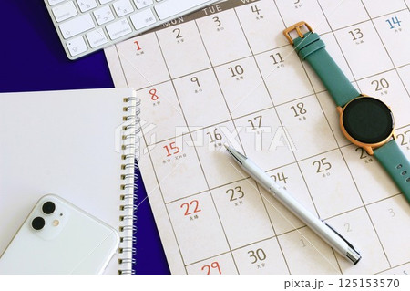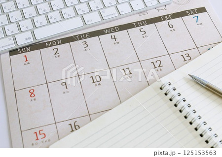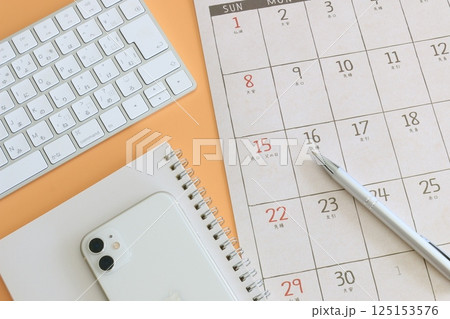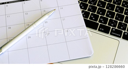 ビジネス パソコンとカレンダー シフト調整 スケジュール管理 3:2