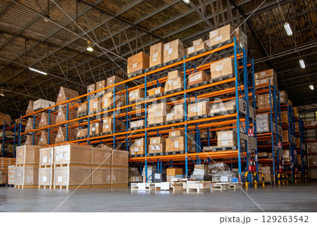 物流倉庫に置かれた製品(段ボール)