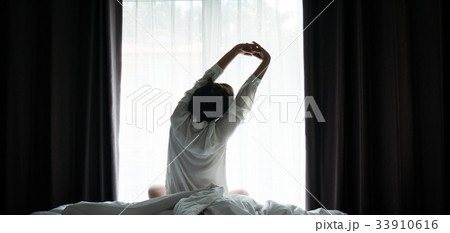 Asian women wake up from sleep are stretch herself