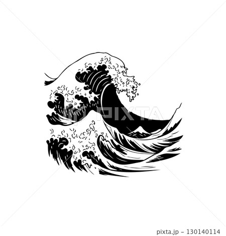 Stylized ocean wave illustration in black and white, embodying classic artistic beauty
