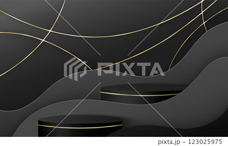 Abstract gold line ribbon curve overlap on black fabric wave design modern luxury elegant background vector
