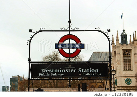 イギリス ロンドン 地下鉄 ウェストミンスター駅の標識 入口 出口