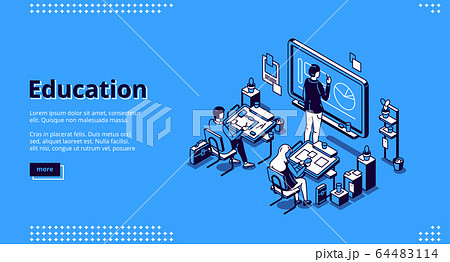 Education isometric landing page, teacher students
