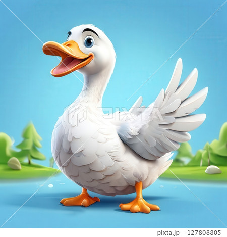 an AI Image Generator, Cheerful Cartoon Duck Waving