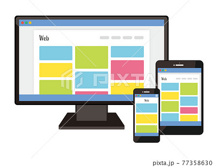 レスポンシブデザインに使えるデバイスのイラストセット ウェブサイト