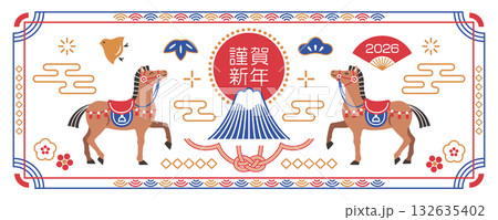 2026年 午年 馬と富士山の和風バナー素材