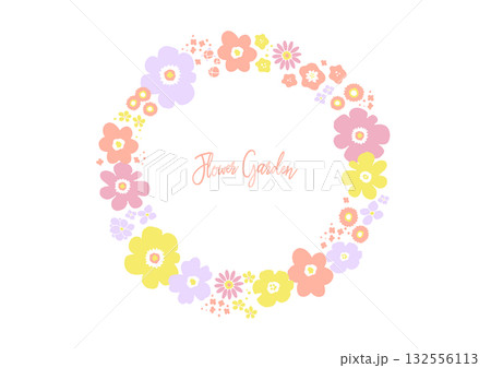 ピンクの花のリースフレーム(ガーリーかわいいデザイン)
