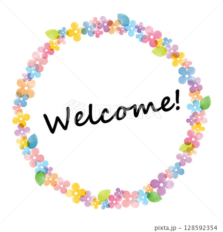 welcome(ウェルカム)のカラフルな手書き文字とフキダシ