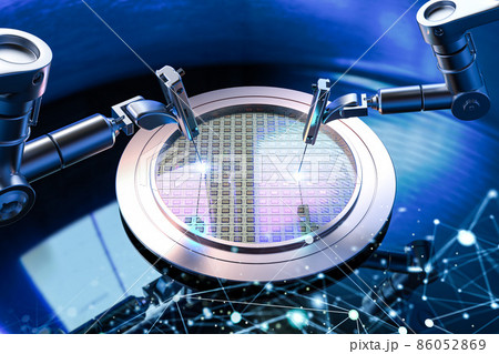 Robotic arms with silicon wafers for semiconductor manufacturing
