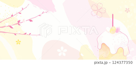 Spring Easter Cake Pastel Banner. Floral Branches and Delicate Holiday Decor with Classic Kulich