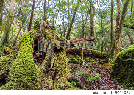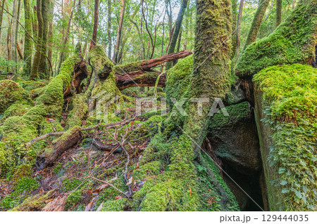 屋久島国立公園 木漏れ日と苔むす森(秋