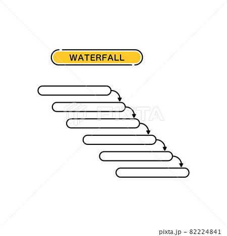 アイソメトリック ウォーターフォールとアジャイル、システム開発環境のイメージ ベクターイラスト