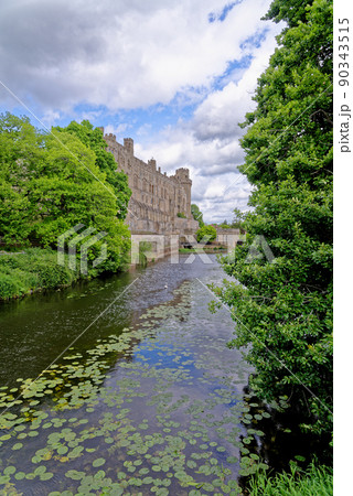 Medieval Warwick Castle and Avon river in Warwickshire - England