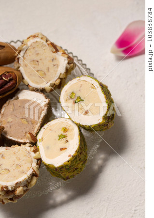 Concept of tasty sweet food, tasty nougat