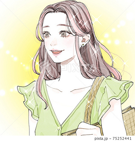 ワクワク、ウキウキ元気いっぱい!夏を前に楽しそうな様子の若い女性イラスト素材。