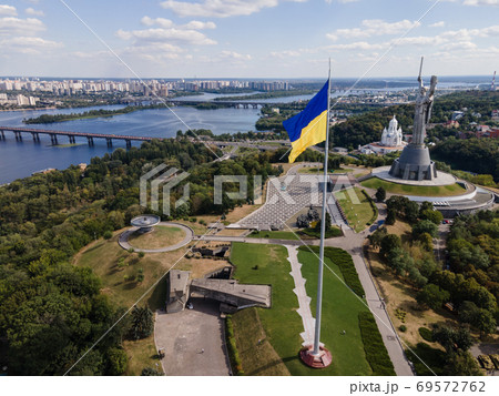 Aerial view of the Motherland Monument. Kyiv, Ukraine