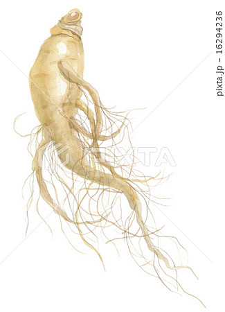 水彩で描いたトチバニンジンの根 栃葉人参の根