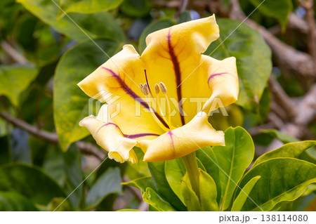 沖縄県名護市名護 名護城公園さくらの園のウコンラッパバナのクローズアップ