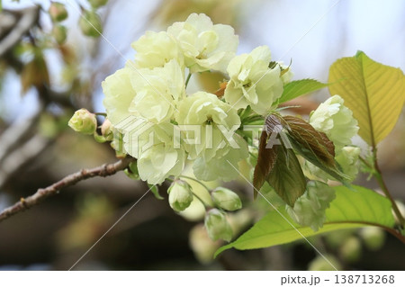 うこん桜 鬱金桜 薄緑色の花をつけるうこんの桜