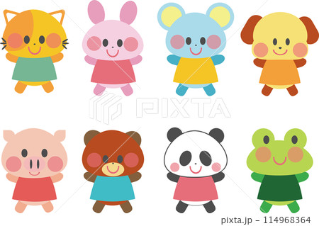 保育動物イラスト全身素材集_うさぎ, 犬, 蛙, 猫, ねずみ, 熊, 豚, パンダ
