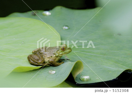 池に生えてるスイレンの葉に乗ってるウシガエル